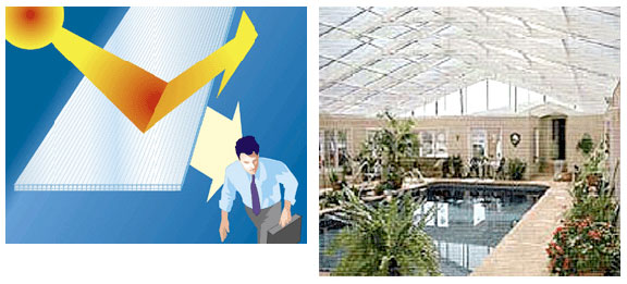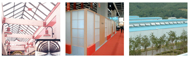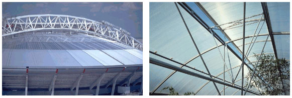채광 지붕재 : 재래시장 아케이드, 체육관, 지하철 역사, 공장 건물, 식물원, 유람선 등.
