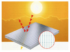 표면에 특수한 금속반사 코팅을 처리하여 채광 소재의 장점인 및 투과율을 최대한 유지하면서 열에너지 투과를 합리적인 수준으로 줄인 첨단 기능성 복층 반입니다.