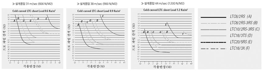 설치시 내풍압 검토 기준 - 곡면시공시 LTC선정기준