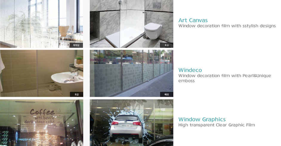 • Window Decoration이 가능한 기본 Etching Film부터, 다양한 패턴과 컬러의 고객 Customized 제품까지 공간의 재구성이 가능한 Window Film입니다.