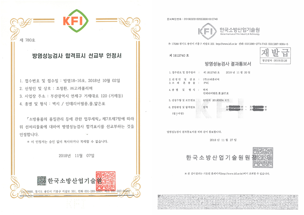방염시트는 관공서, 유치원, 병원 등의 소방법에 의거한 다중이용업소에 소방 관련 법률에 따라 방염 대상 물품을 갖추거나 사용하도록 되어 있는 곳에 사용되고 있습니다.